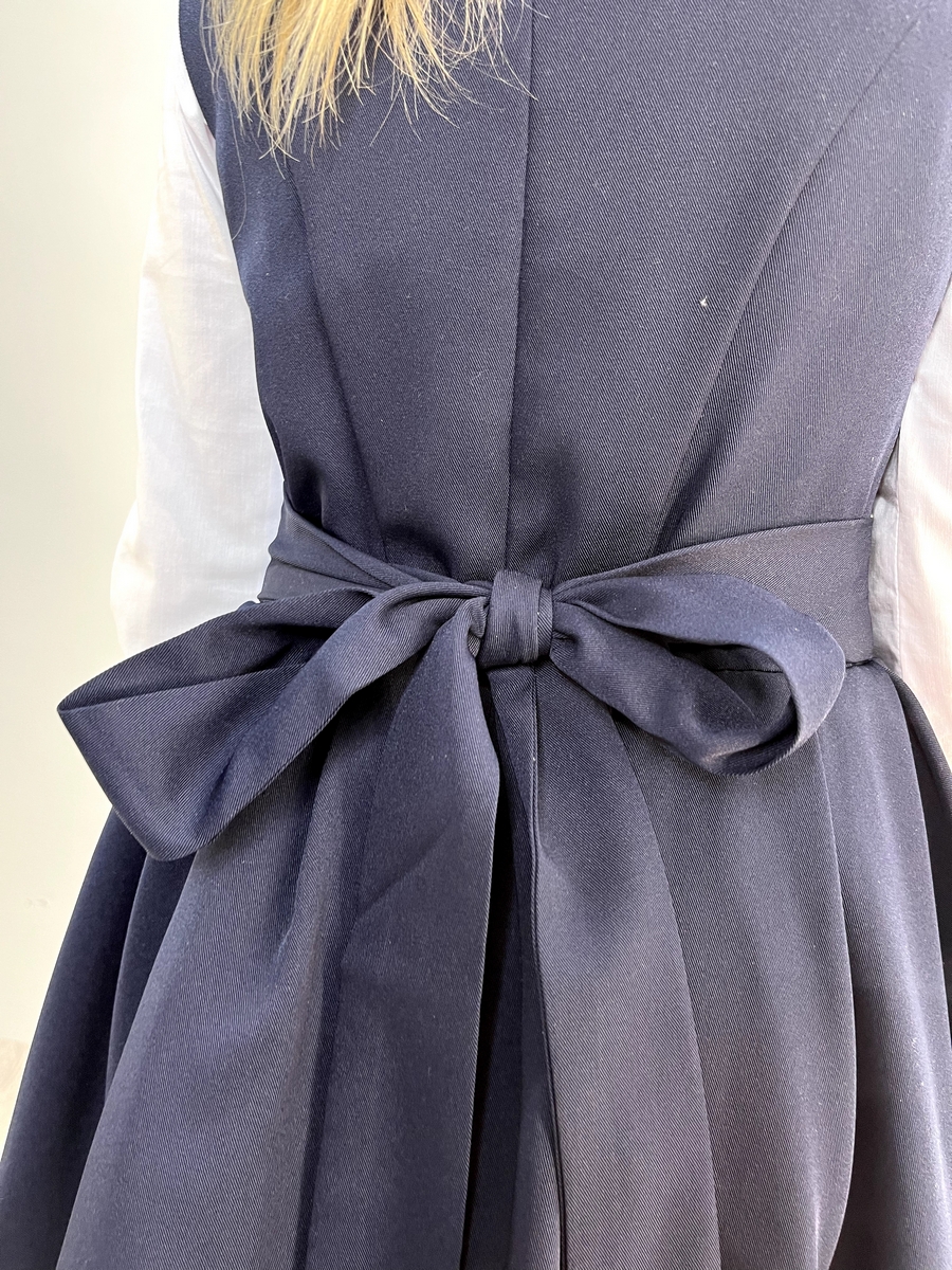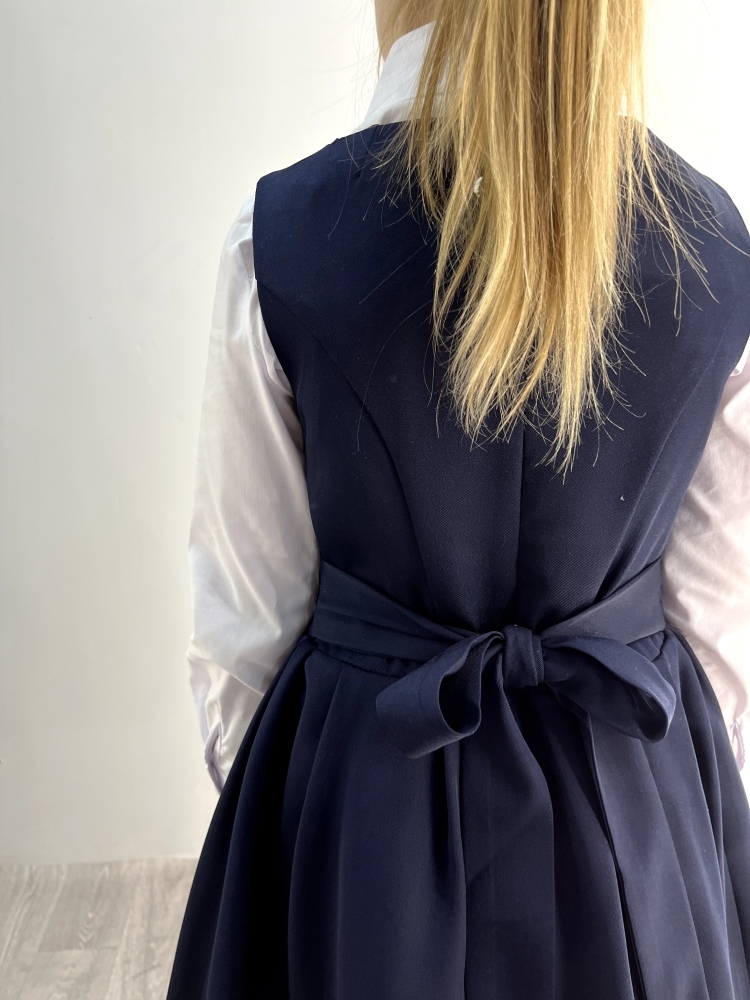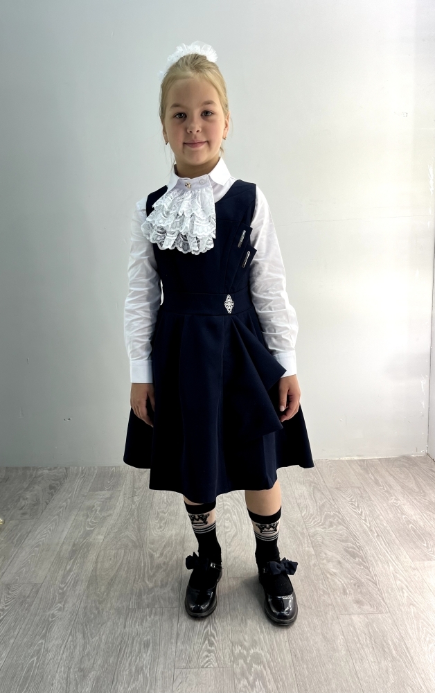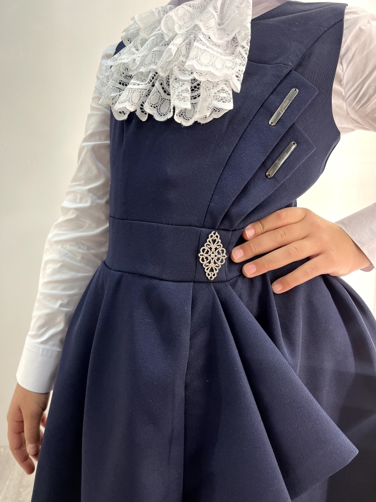 Перед платья украшен объёмными декоративными элементами в виде банта.