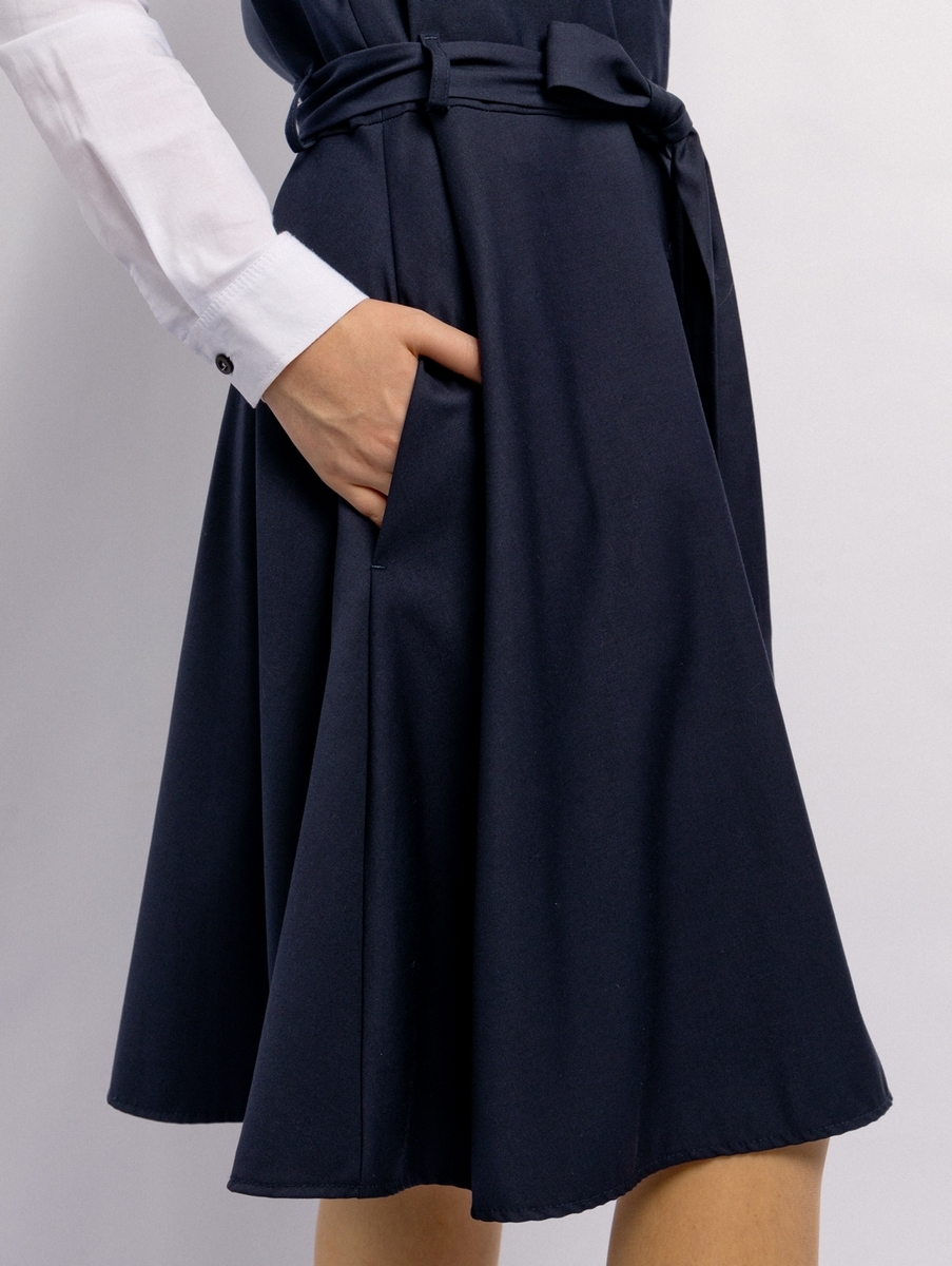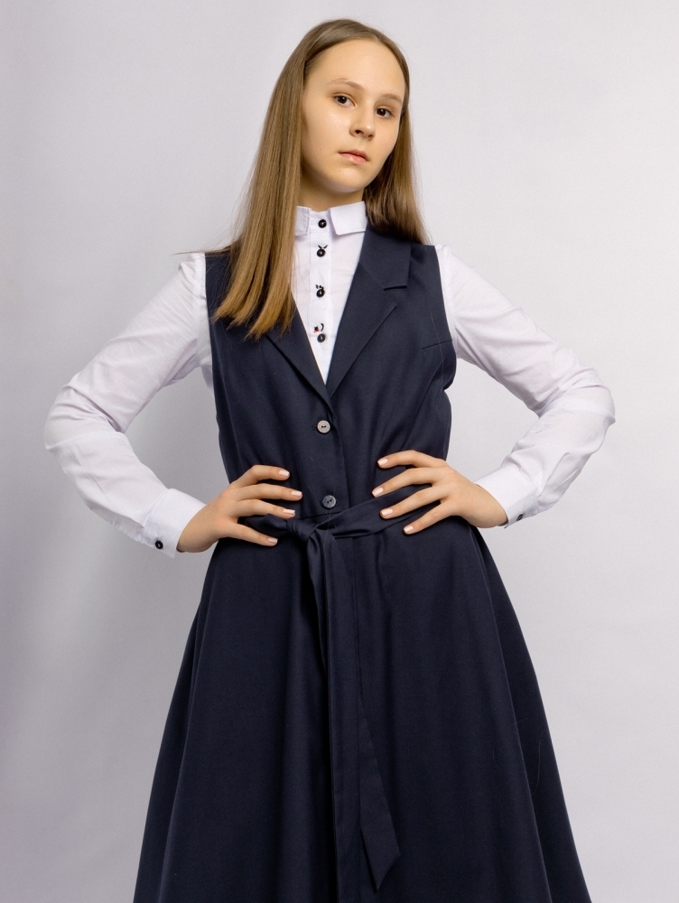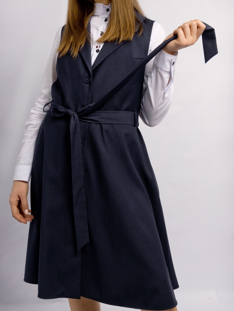 Сарафан с однобортной застежкой со съемным поясом. Юбка полусолнце.