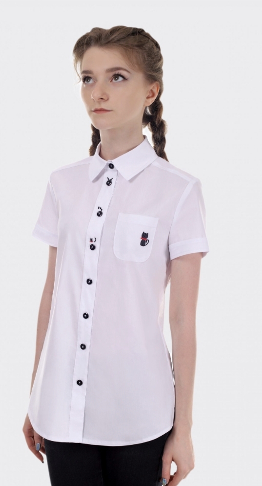 Блузка-рубашка с интересной вышивкой на планке и кармане, в коротком и длинном рукаве