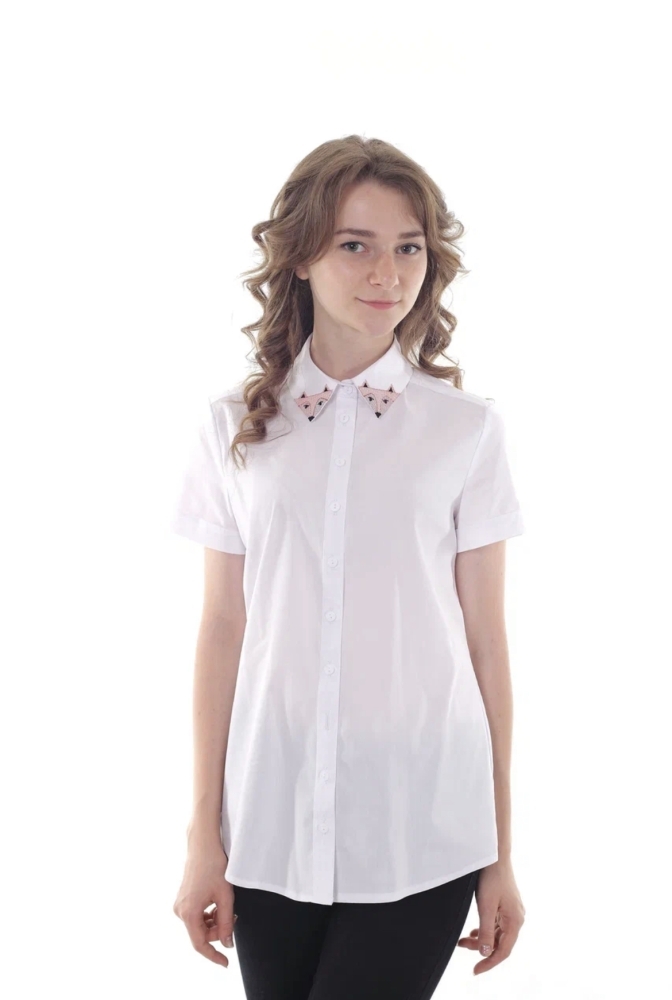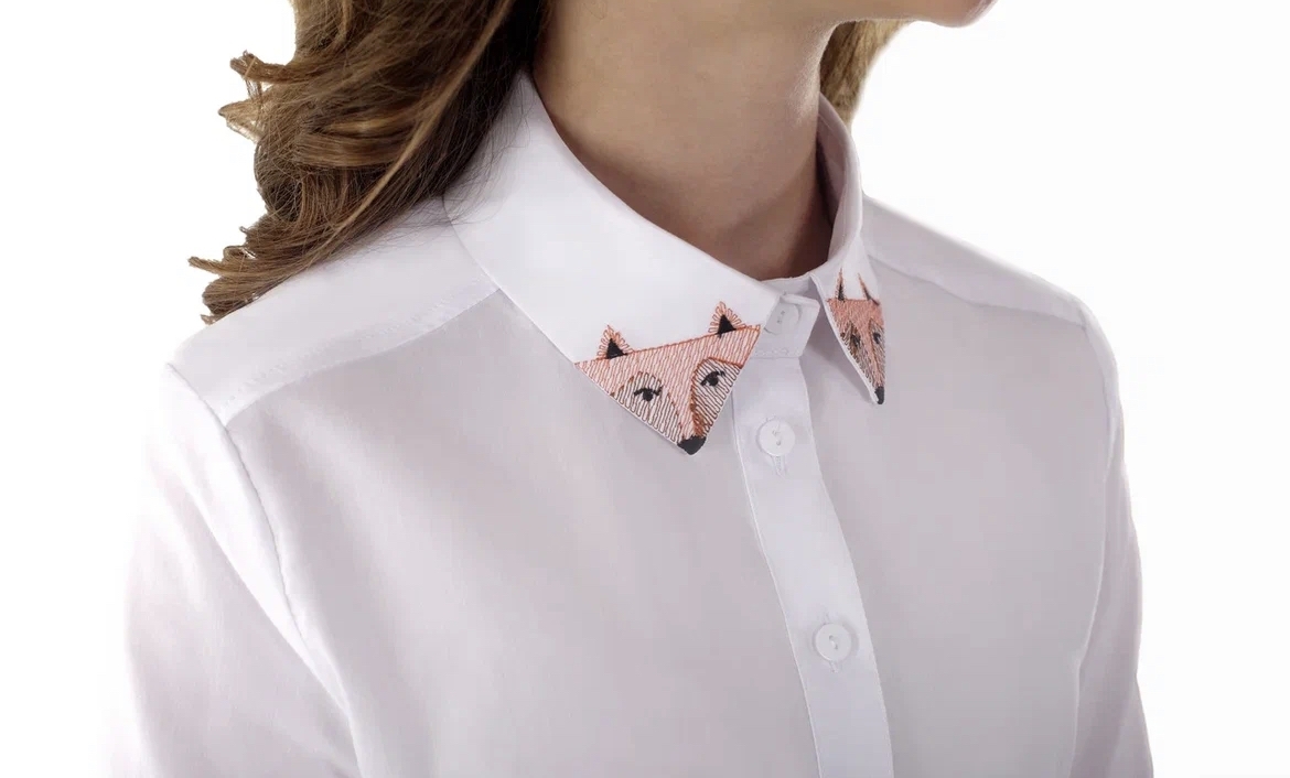 Блузка-рубашка для креативных подростков. Трендовая вышивка - "Лиса"